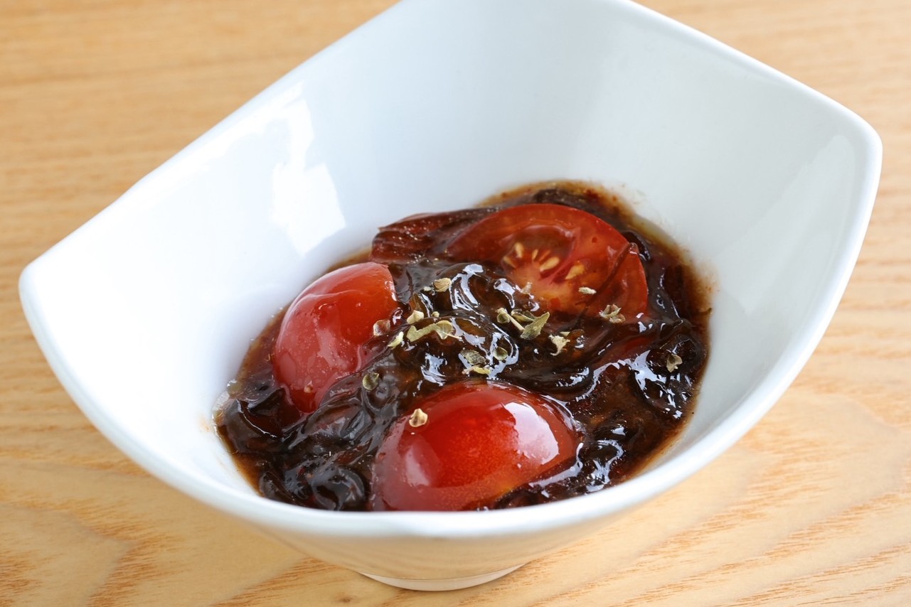 トリトンフーヅ独自の製法でシャキシャキ食感を実現した、沖縄県産のもずくを贅沢に使用。